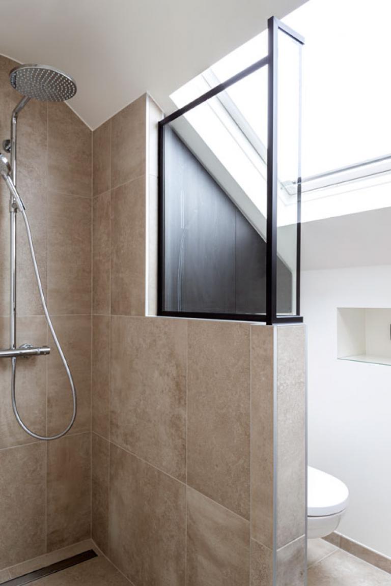 Een ruimte hoeft niet altijd groot te zijn om luxe uit te stralen. Dit hebben we met dit project ook bewezen. Deze badkamer had een kleine oppervlakte, maar met de juiste toepassingen, technieken en kleurgebruik lijkt ze optisch groter. Een grote douche? Geen probleem! Veel lichtinval? Geen probleem! Met een Velux in het schuine dak komt er meer dan voldoende naturel licht binnen. Om de luxe en het praktische samen te voegen hebben we de glazen douchewand op een muur geplaatst zodat de spatten van de douche minder zichtbaar zijn. In het kort gezegd: een kleine badkamer voorzien van alle luxe.