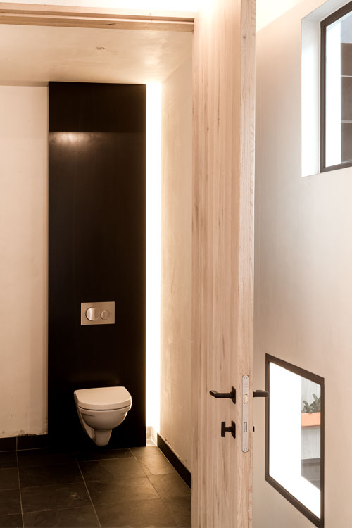 Voor de binnenkant heeft onze architect veel moeite gedaan om te spelen met de lichtinval. Zo zijn de ramen buiten, binnen en in het midden van de muur geplaatst om die speling met de lichtinval te bekomen.
